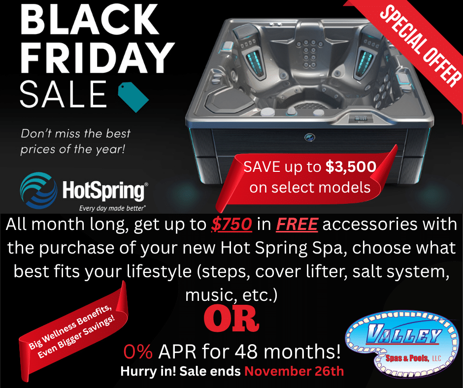 This month only, receive up to $750 in accessories of your choice with the purchase of any new Hot Spring spa!